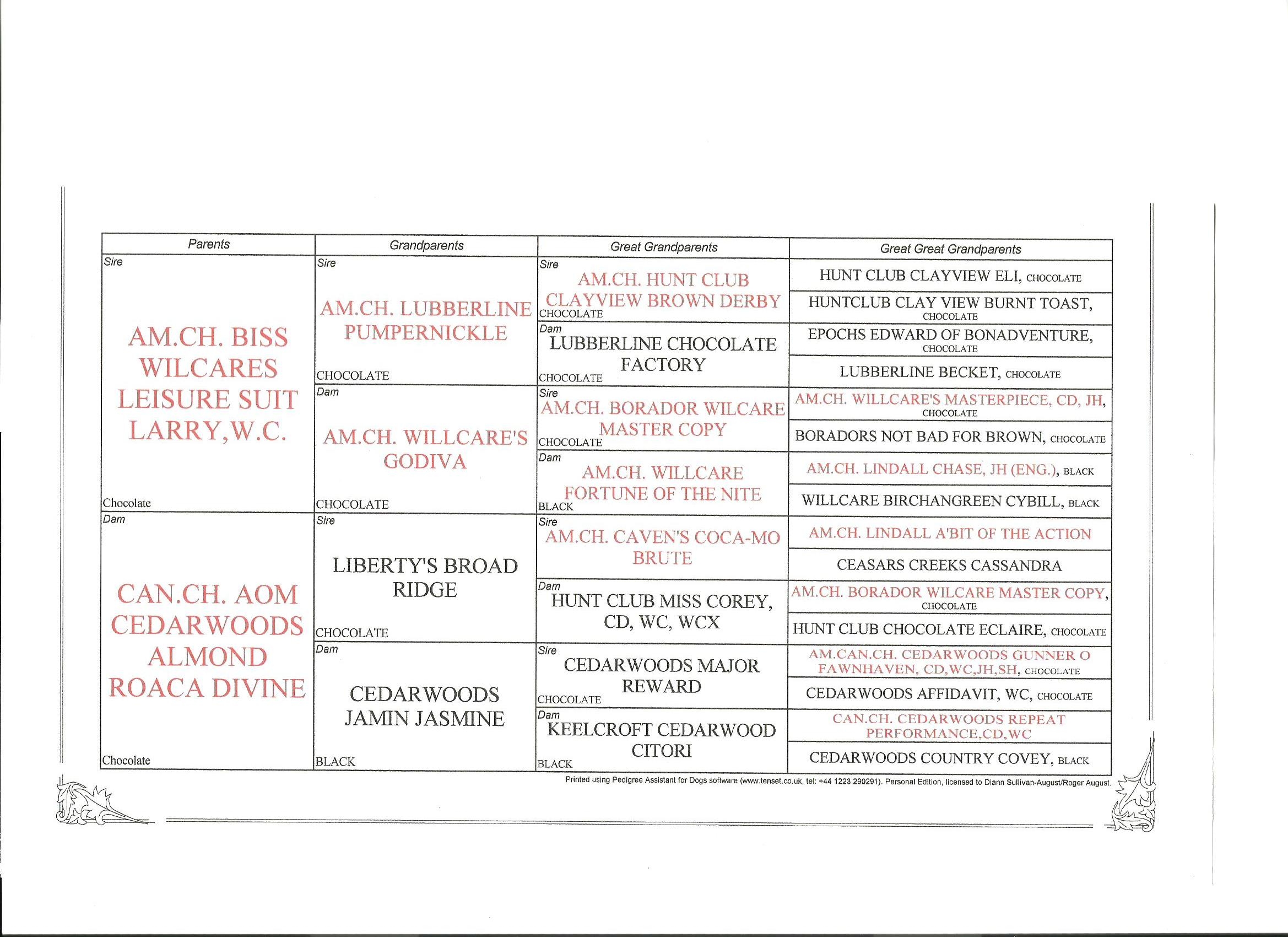 CH Wilcare Leisure Suit Larry was chosen and the first litter was spectacular and incredibly uniform. I wasn't able to keep a puppy until the September 7, 2008 litter - my "SIGGY".